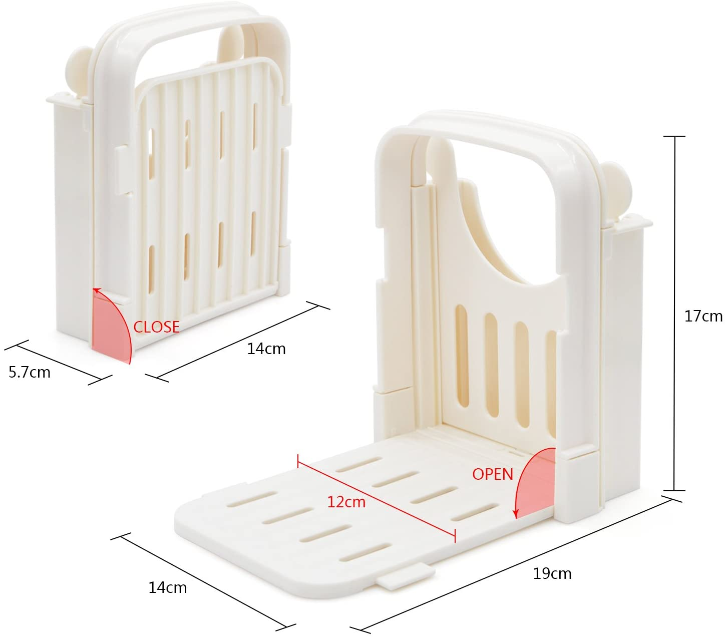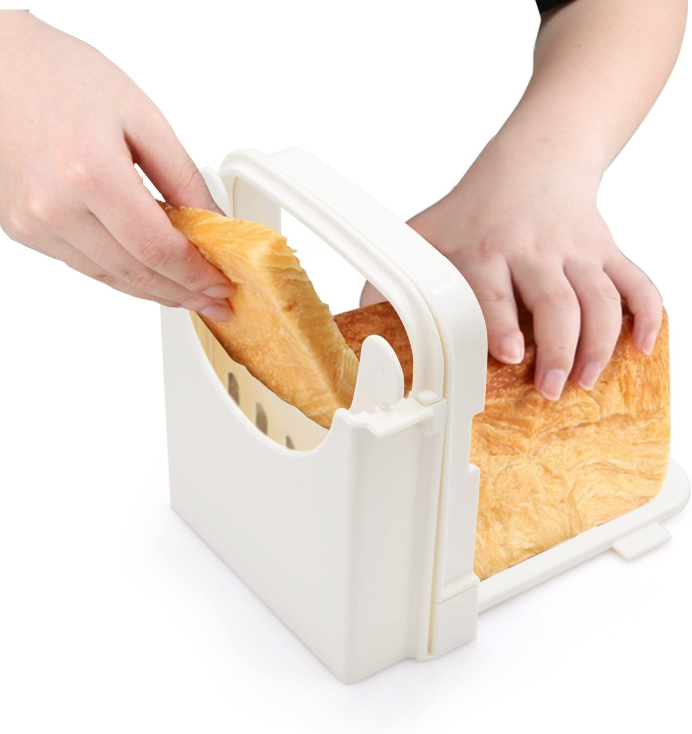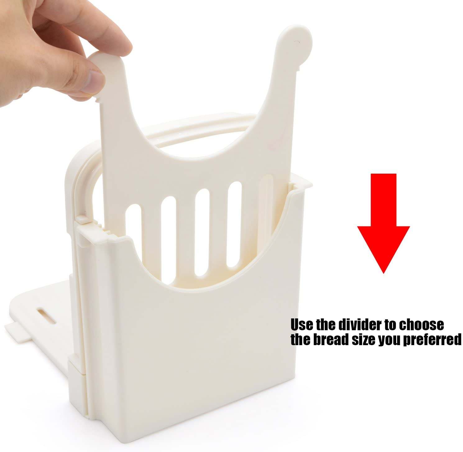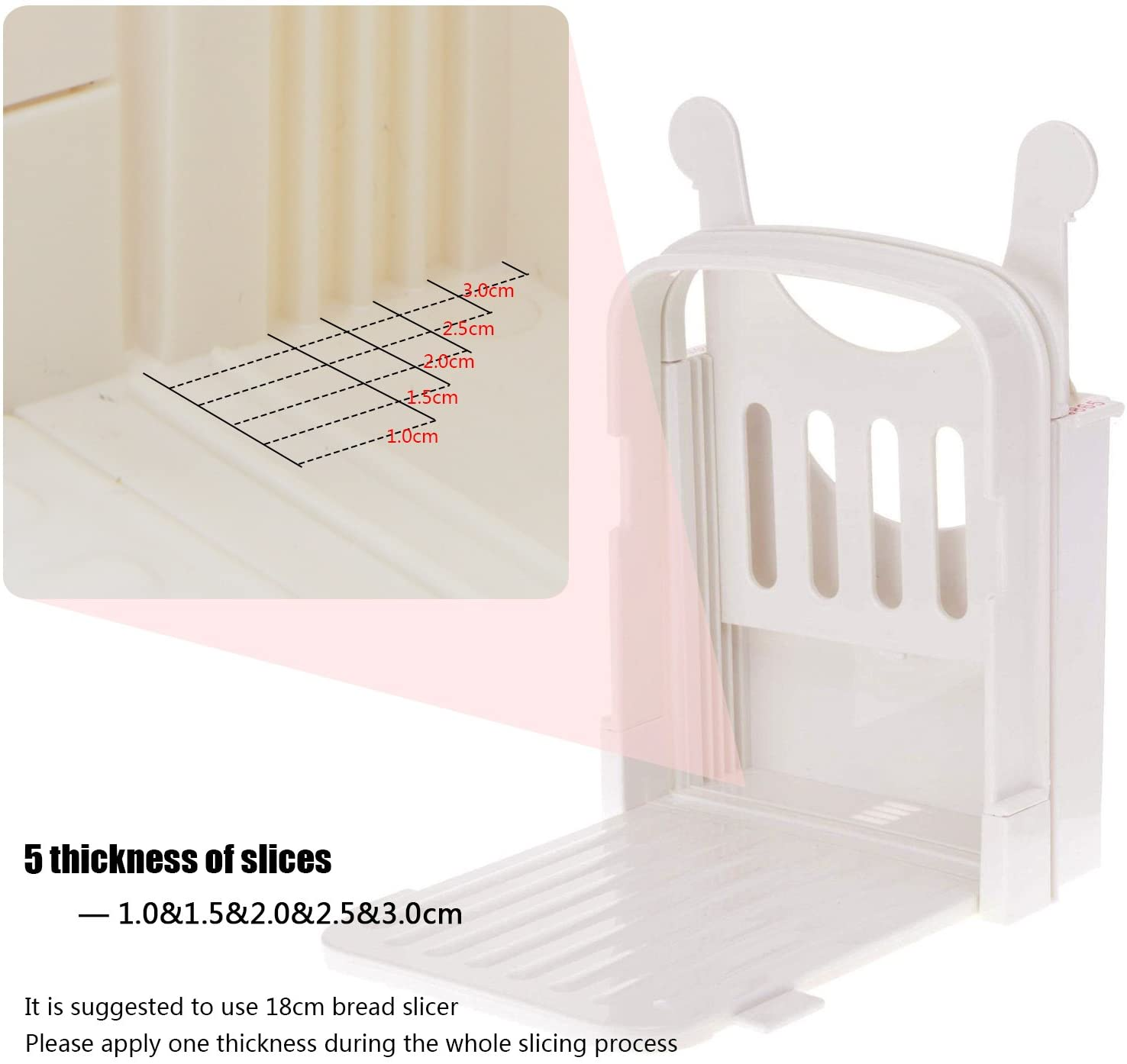 Muy funcional: diseñado para permitirle cortar el pan en 5 espesores diferentes de 10 mm / 15 mm / 20 mm / 25 mm / 30 mm.Nunca se preocupe por cortarse los dedos, perfecto para el uso diario.