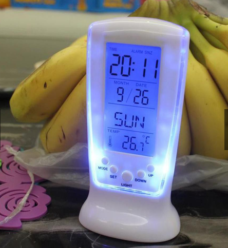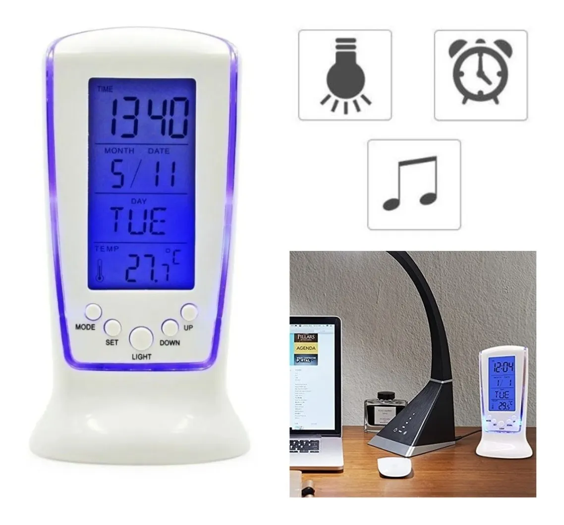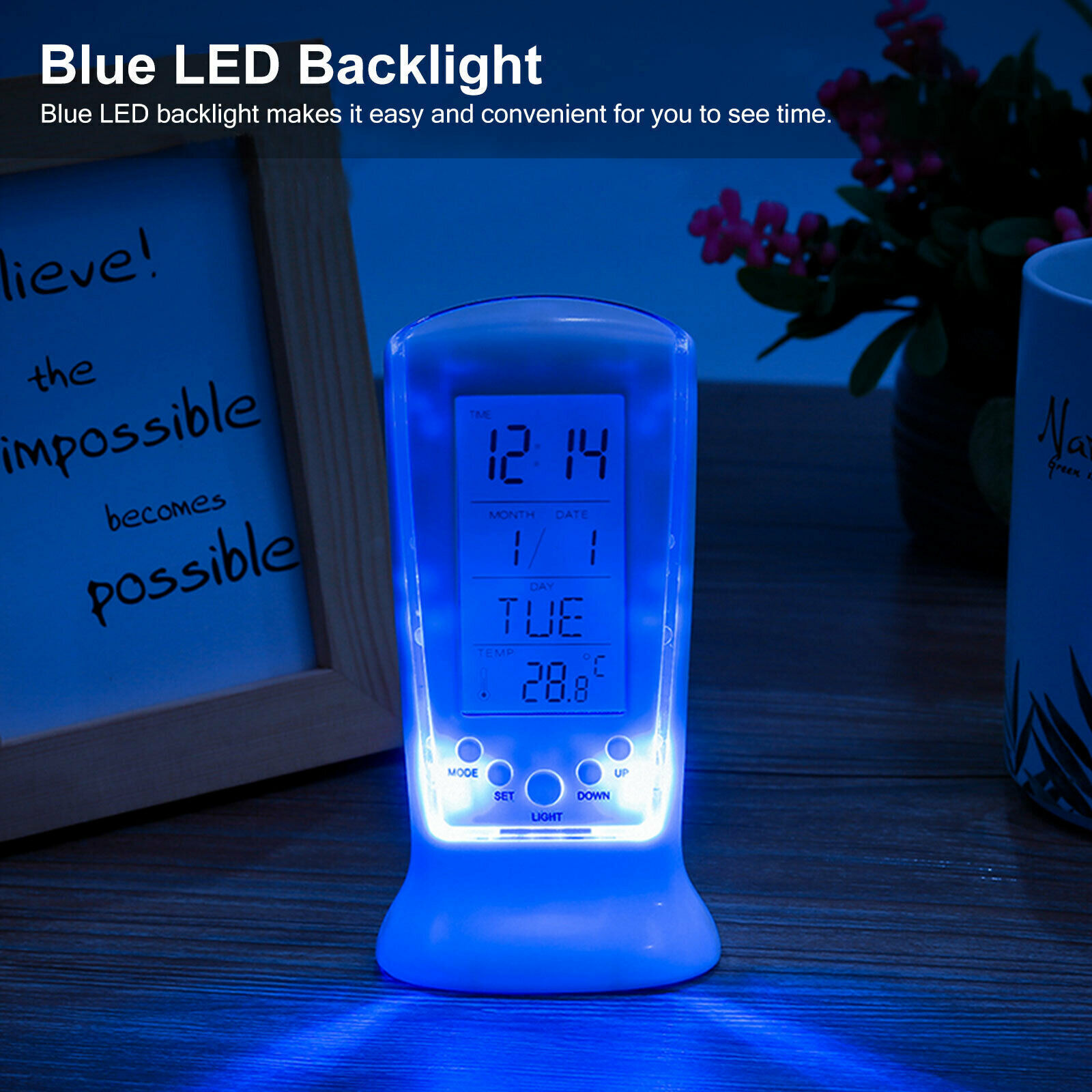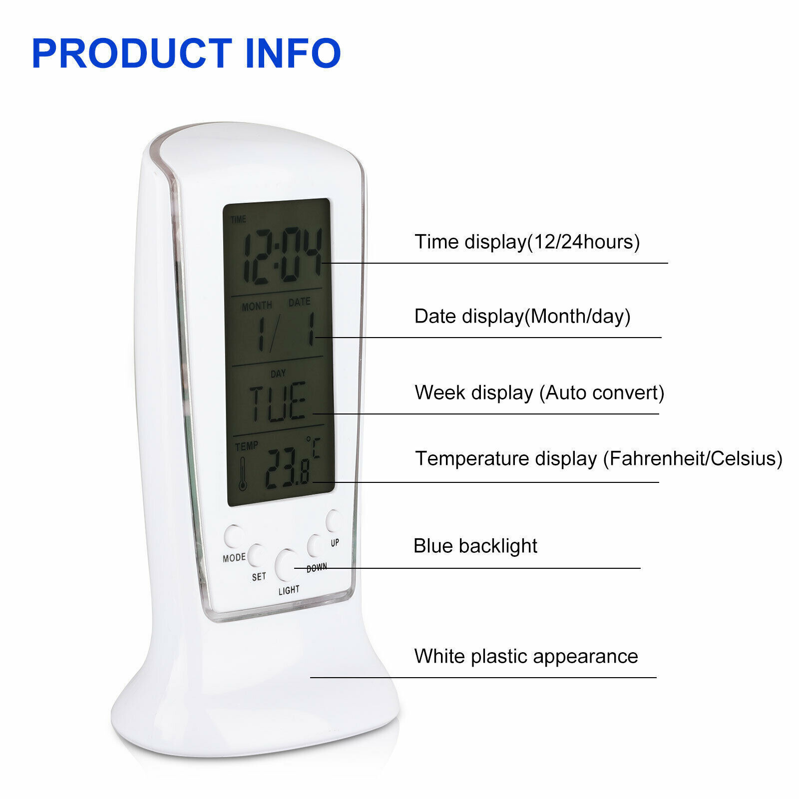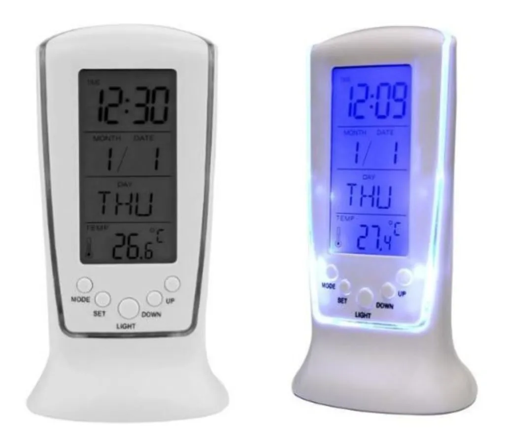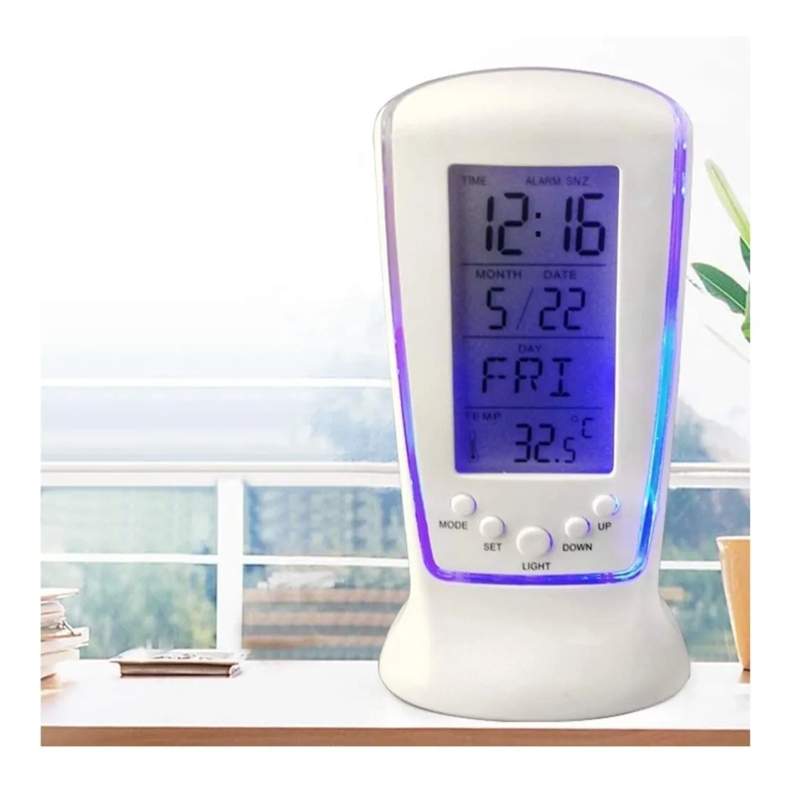 Multi-relojes con función LCD Digital Reloj termómetro del calendario pantalla reloj LED azul reloj despertador con luz de fondo