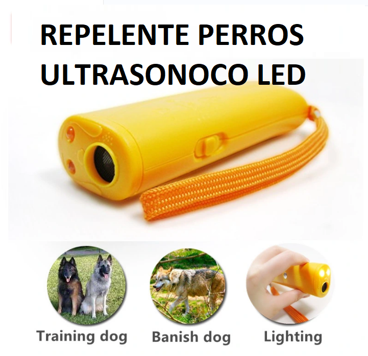 Dispositivo de entrenamiento ultrasónico para ahuyentar perros y mascotas con luz LED Descripciones: