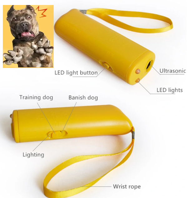 ¿Qué puedes hacer cuando tu perro empieza a ladrar sin parar? Con el adiestrador ultrasónico para perros, puedes entrenar a tu mascota para que sea obediente, corrija el mal comportamiento y deje de ladrar. El adiestrador se basa en la teoría de que el ultrasonido (más de 20 KHZ) está por encima del límite superior de la audición humana y la luz blanca fuerte de 2800 mcd y súper ultrasónica puede activar visualmente y aditivamente a perros, gatos y otros animales, pero no tendrá efectos en las personas.