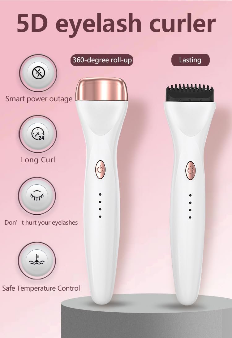Rizador de pestañas eléctrico sin pellizcos, herramienta de maquillaje con 3 modos de calentamiento, rizador de pestañas 5D recargable para el hogar, , blanco