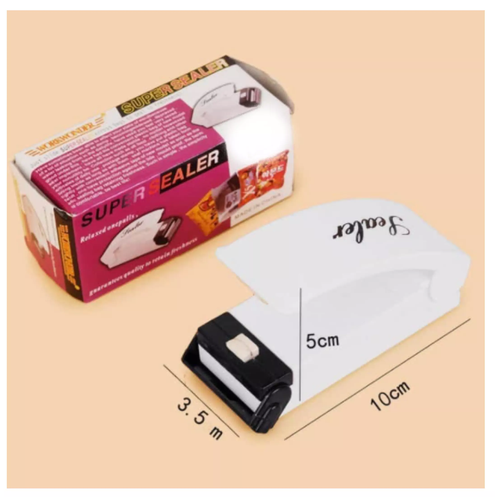 Esta selladora manual es la única herramienta que le permite sellar bolsas plásticas de calibre delgado, Es muy sencillo y fácil de usar pues Para utilizarlo, simplemente coloque la bolsa entre los brazos del sellador y presione por 3 segundos. Luego deslice el sellador a lo largo de la bolsa para sellar.Esta selladora es especial para utilizar en la cocina, en tiendas, misceláneas, oficina, viajes, joyas etc.CARACTERÍSTICAS