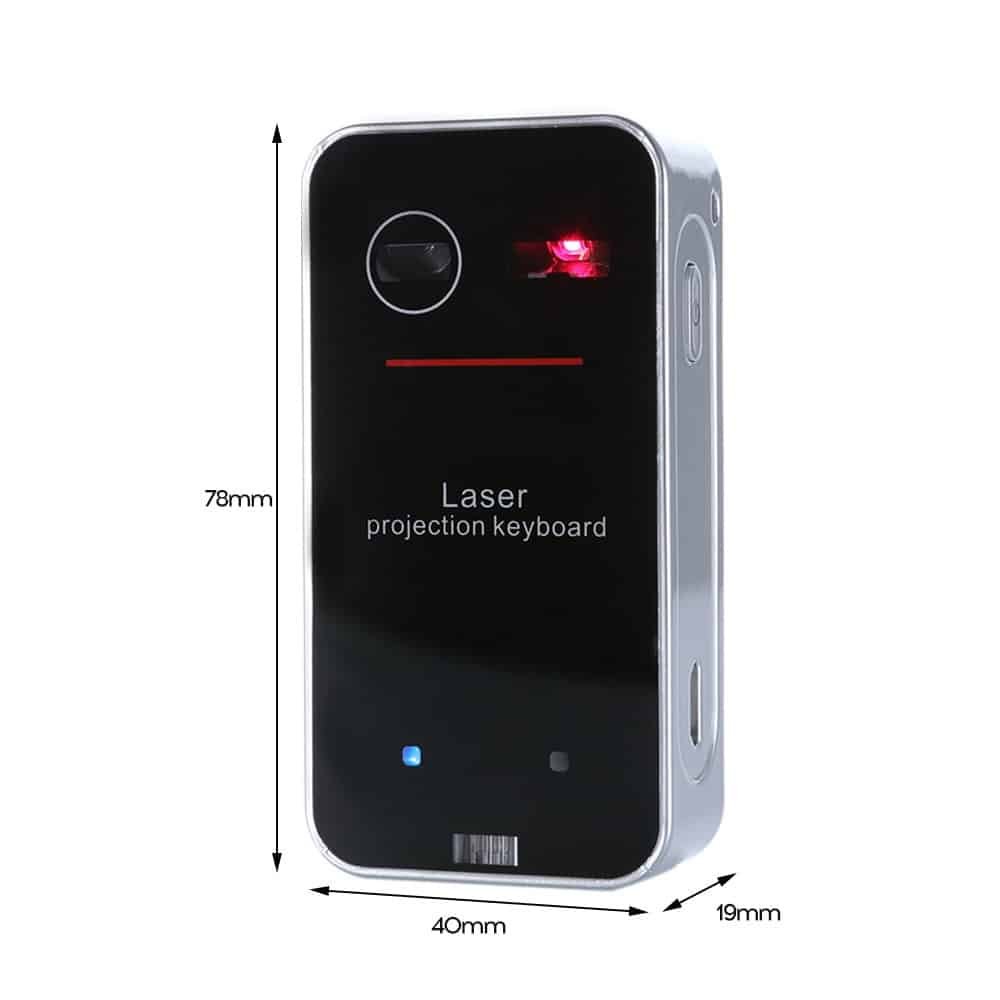 Característica: Diseño de teclado QWERTY inglés. Compacto y ultraportátil para la movilidad. Batería recargable de polímero de iones de litio. Diseño verdaderamente portátil: perfecto para el viaje. Durabilidad Superior (sin componente móvil en el interior). Tono de teclas de tamaño completo y teclas de acceso directo para facilitar la operación. Sin teclado físico, tamaño pequeño, fácil de llevar, este teclado de proyección puede adaptarse a la mayoría del entorno de trabajo. Fácil conexión a través de Bluetooth 2.0 HID profile Ver. o USB. conexión a dispositivos principales, como Tablet PC, Smartphone, PC de escritorio y videojuegos. Como un nuevo dispositivo de entrada, utilizando el transmisor láser infrarrojo incorporado para proyectar el teclado estándar en la superficie de trabajo, puede localizar la posición de clic e introducir la información mediante el método de identificación óptica Compatible con: Ios4 o superior, Android 2.1 o superior, Windows XP o superior, Windows Phone 7 o superior, Mac OS Descripción funcional de la apariencia del producto: Luz roja: larga brillante – apagado de carga – carga completa Luz azul: parpadeando – emparejamiento estado apagado – paire Luz amarilla: parpadea una vez – comienza normalmente Modo de conexión USB: Método: el dispositivo USB está conectado Interfaz USB: tipo Mini-B USB estándar Especificación de interfaz: teclado HID USB Potencia de entrada: carga USB 1A 5V Paquete incluido: 1x teclado de proyección láser 1x Cable USB 1x Manual de usuario