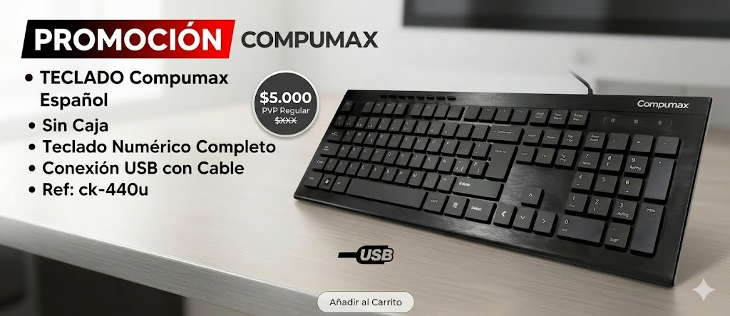 TECLADO USB sin caja PROMO Compumax Español Numérico Cableado USB Negro ck-440u