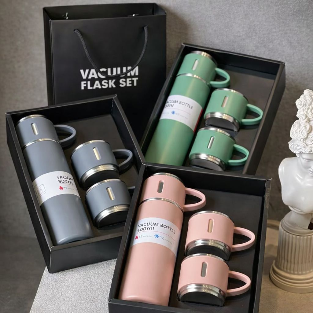 TERMO METAL TÉRMICO DE LUJO CON 3 VASOS CAPACIDAD 500 ml