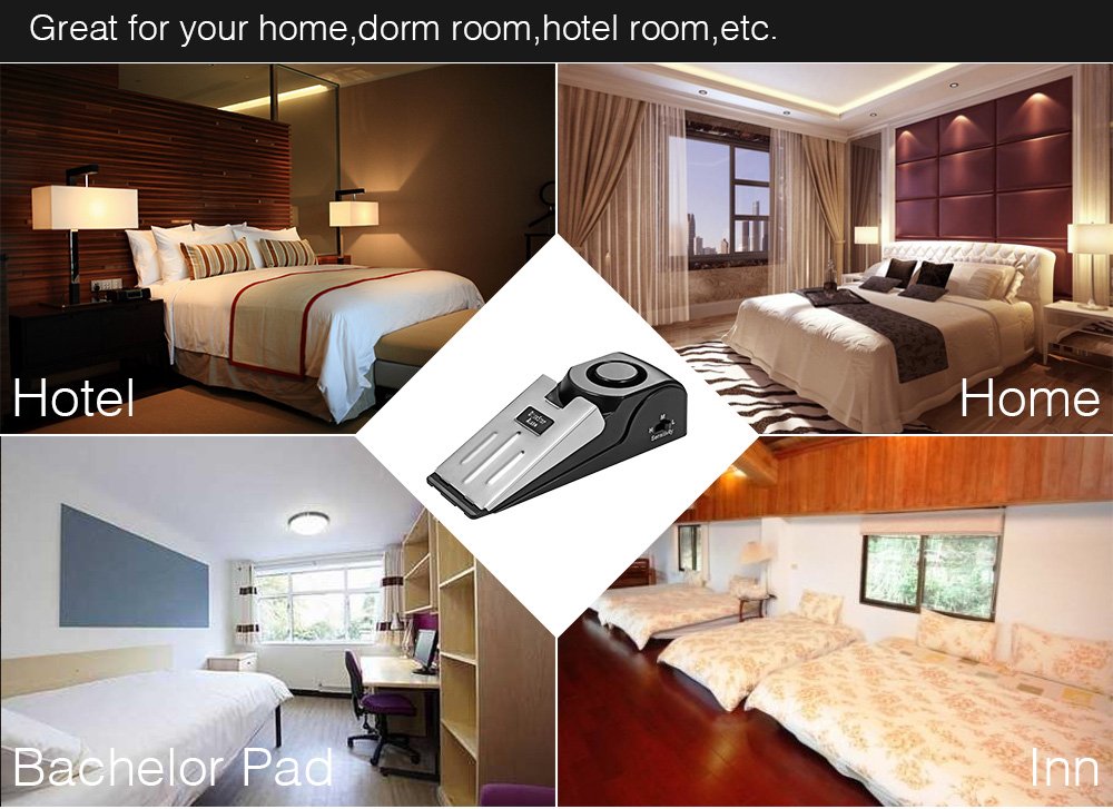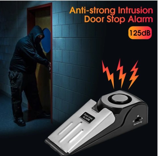 Alarma de Tope de puerta de seguridad para el hogar, alarma de vibración de bloque de puerta de 125db, tope de alarma de puerta portátil para seguridad de viaje