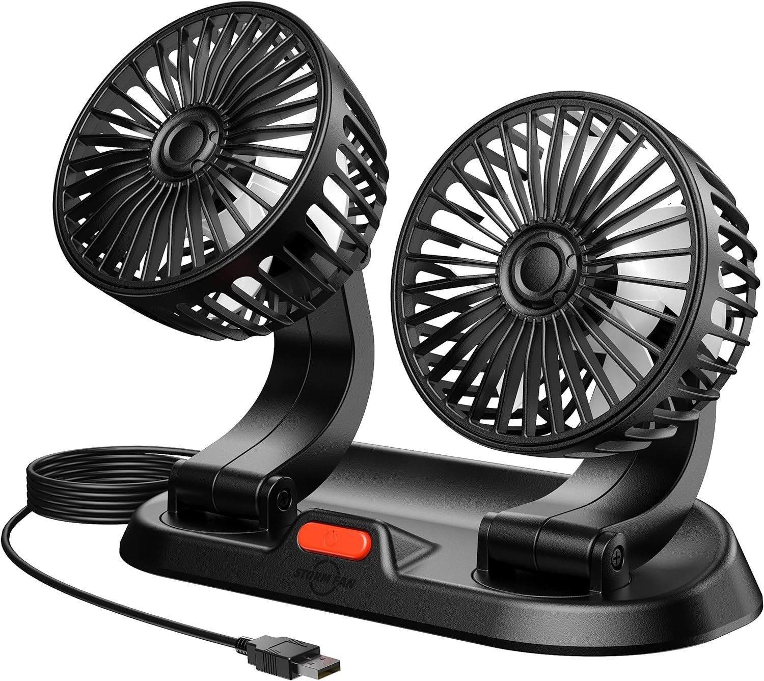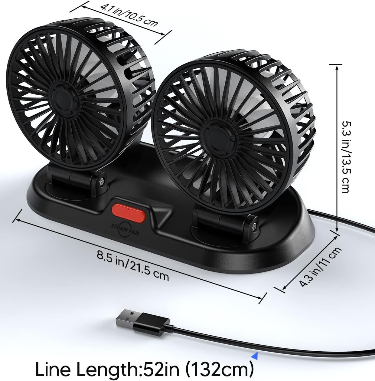 Cabezal doble y viento fuerte: ventilador USB para automóvil con 2 potentes ventiladores e interruptor de 3 velocidades, disipa eficazmente el calor y mejora la circulación del aire y mantiene el aire en los vehículos fresco y fresco.