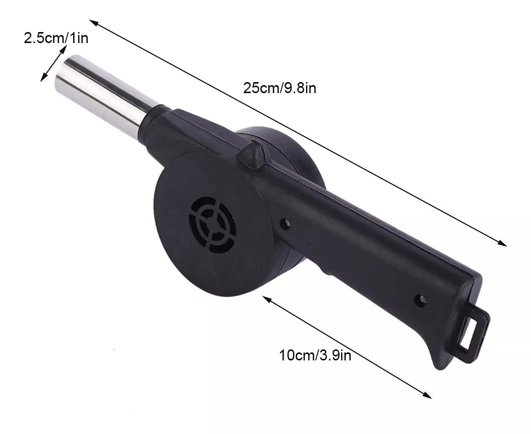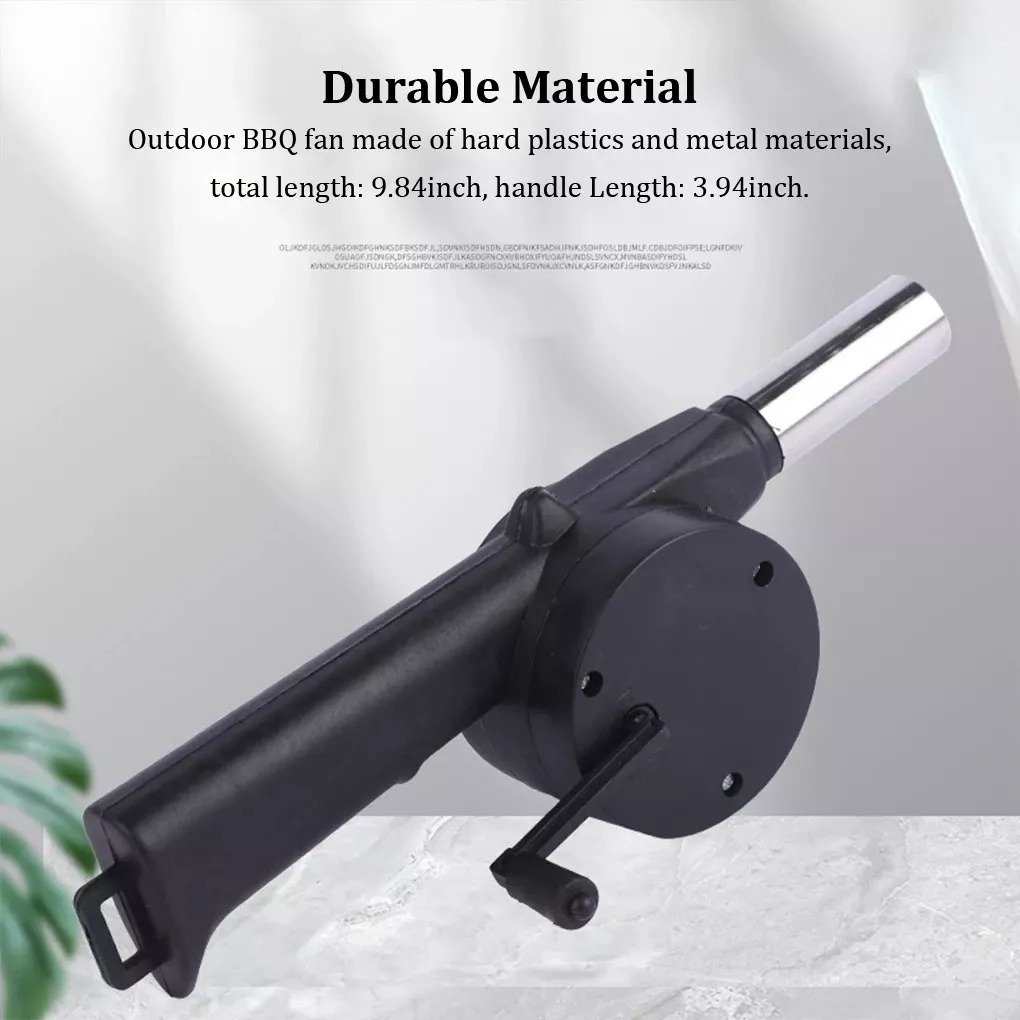 Material duradero: ventilador para barbacoa al aire libre hecho de plásticos duros y materiales metálicos, longitud total: 9,84 pulgadas, longitud del mango: 3,94 pulgadas.