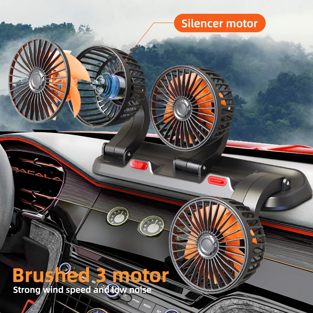2 VELOCIDADES AJUSTABLES: ventilador del automóvil, presione el botón de encendido repetidamente para ajustar la velocidad del ventilador adecuada. El diseño ajustable de 2 velocidades le brinda más opciones en diferentes ambientes de temperatura.